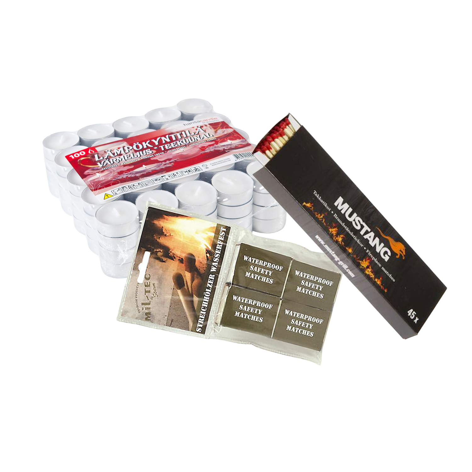 See komplekt, kuhu kuulub 100 teeküünalt ning nii kaminatikud kui ka veekindlad tikud, on kriisivarude vundament, pakkudes pikaajalist valgust ja tuletegemise võimekust igas olukorras. Asetage küünlad alati kuumakindlale alusele ning kasutage kaugele ulatuvaid kaminatikke ohutuks süütamiseks või veekindlaid tikke niisketes oludes, tagades seejuures pideva järelevalve lahtise leegi üle. See lahendab pikaajalisest pimedusest ja jahedusest tekkiva ebamugavustunde, luues kodusema õhkkonna ning garanteerides tule süütamise võimaluse ka siis, kui tavalised vahendid peaksid alt vedama.